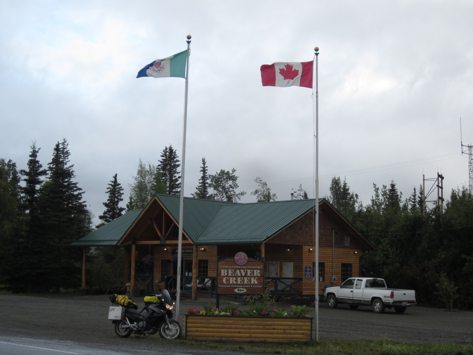 Reaching Beaver Creek Yukon in just under an hour was a highlight, as it is the most western city in Canada. I have now been to the most eastern city, Cape Spear Newfoundland and today the most western city in Canada, Beaver Creek Yukon. Unlike the Cape Spear I was not greeted by a raven haired beauty, instead I had Sid, a kind elderly gentleman with long white hair and a curly moustache working at the information center. Stopping for the customary photo beside the “Welcome to Alaska” sign I head for the US border. Turning back on the on the highway I look up to see a Raven, flying just above me, keeping pace with the bike but eventually soaring off into the forest.